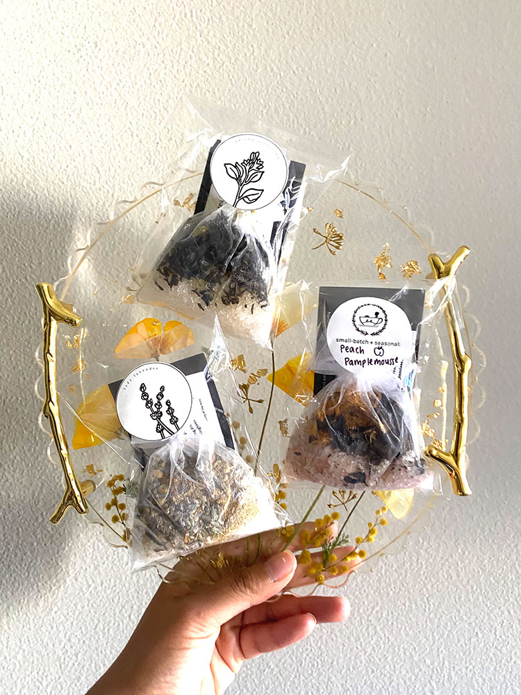 Handcrafted bath bombs made with tea, Epsom salt, and essential oils to create a bathing experience that energizes, focuses, and revitalizes.